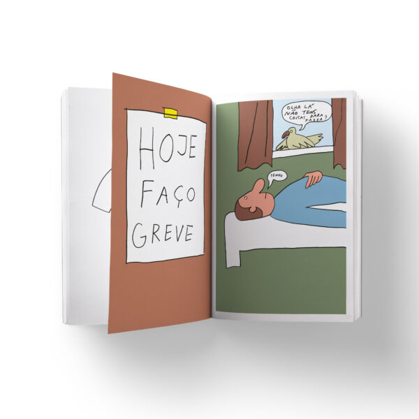 “Uma boa alternativa ao título escolhido por Ruivo para este livro seria um joyceano “Autorretrato do Artista Quando Precário”. Na verdade, a obra retrata, em tom diarístico, a vida de Ruivo nos últimos dois anos (no último desenho do livro, observamos um dossiê de desenhos feitos entre 2022 e 2024) – ainda que recupere, para fins artísticos, algumas ilustrações mais antigas. São episódios do dia-a-dia do artista. A situar-nos no tempo estão ainda referências à atualidade política…